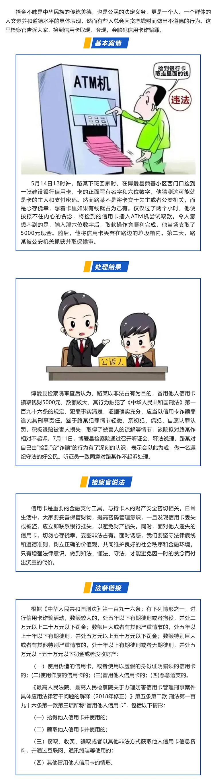 【焦检普法|案例】捡拾他人信用卡并取现,构成信用卡诈骗罪!