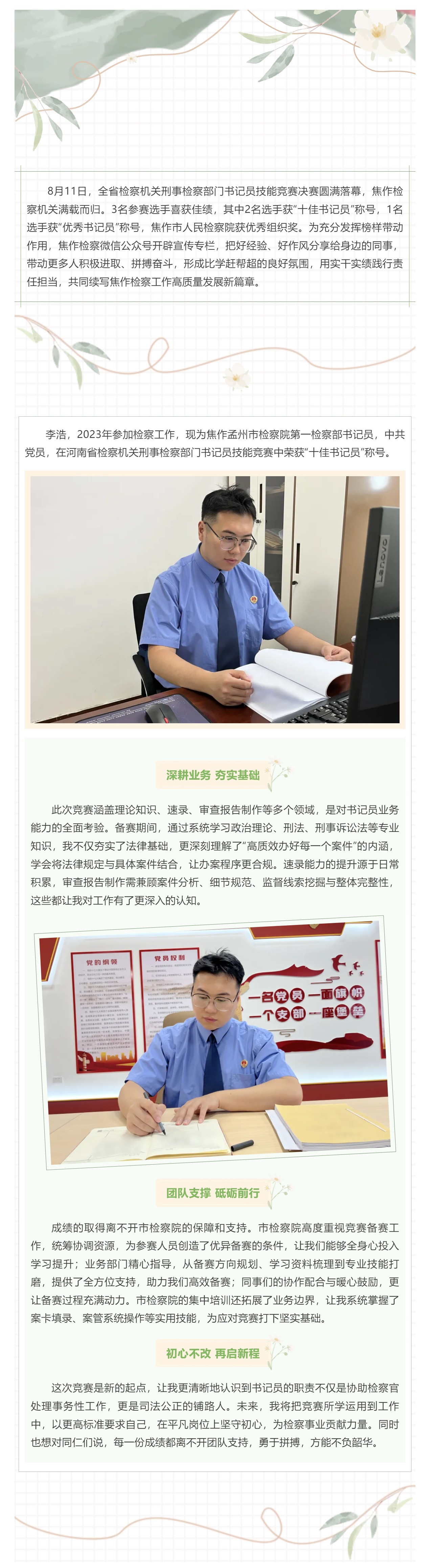 【全省检察机关刑事检察部门“十佳书记员”】李浩:以赛促学 笃行不怠