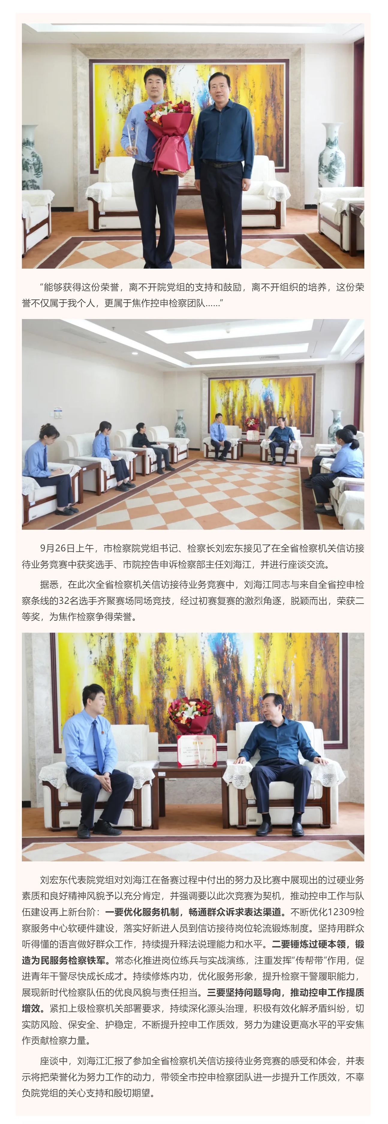 刘宏东检察长接见参加全省检察机关信访接待业务竞赛获奖选手