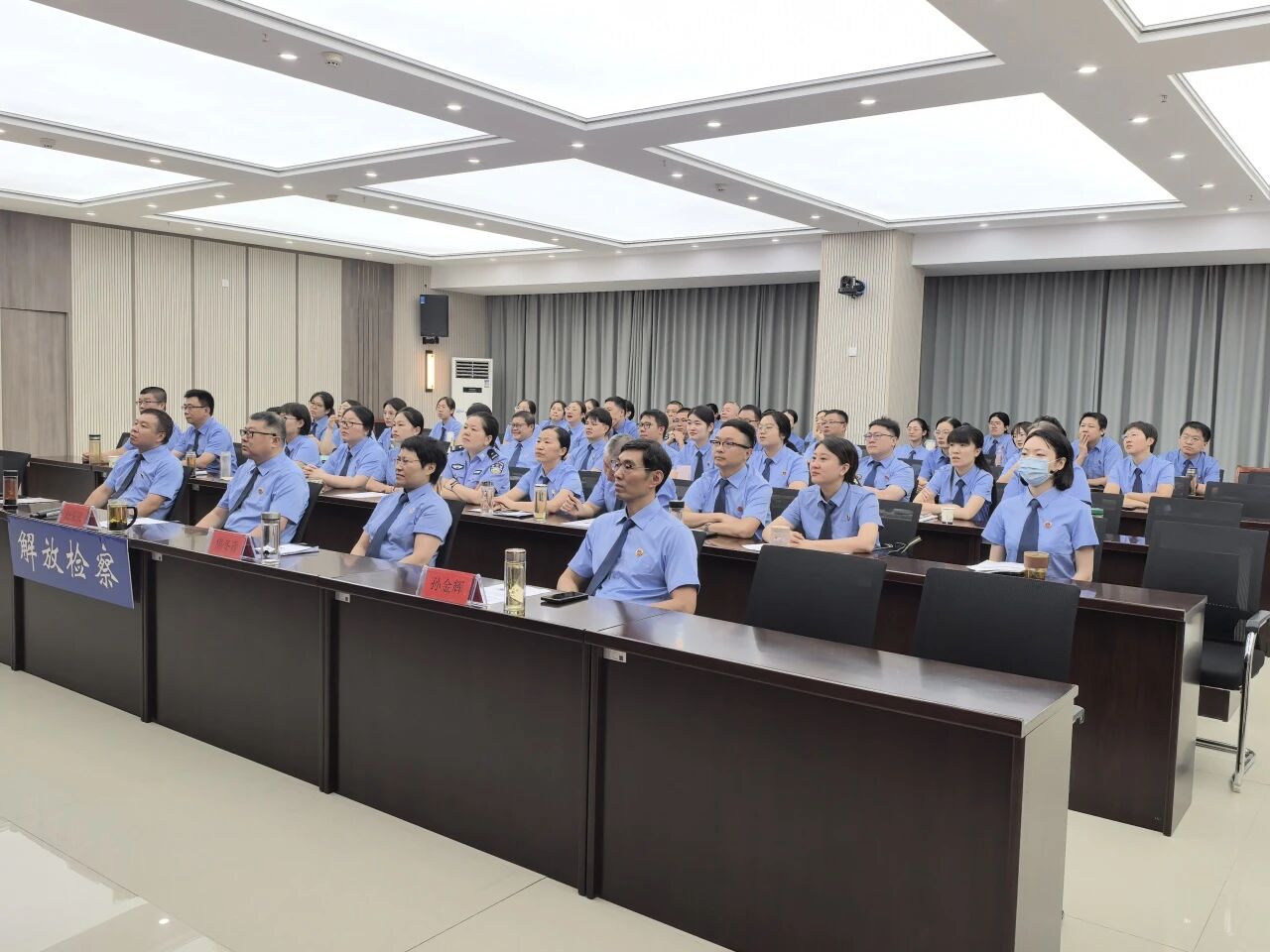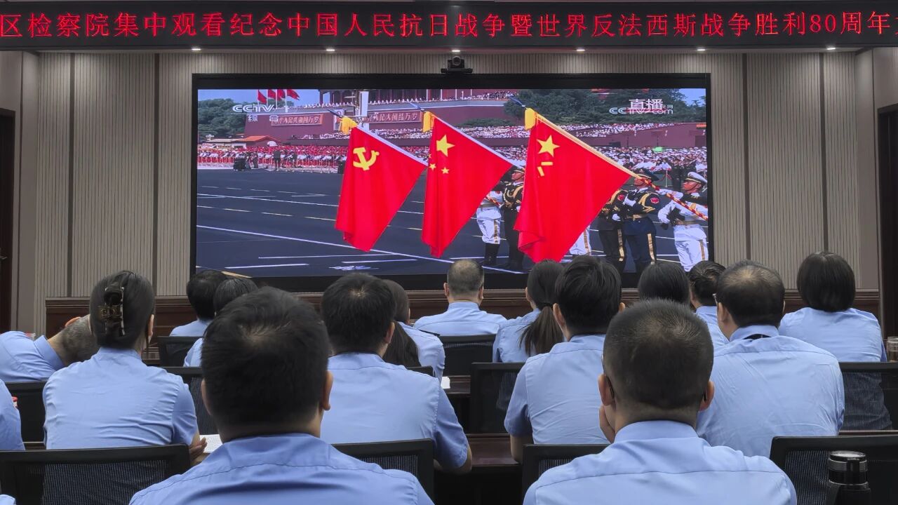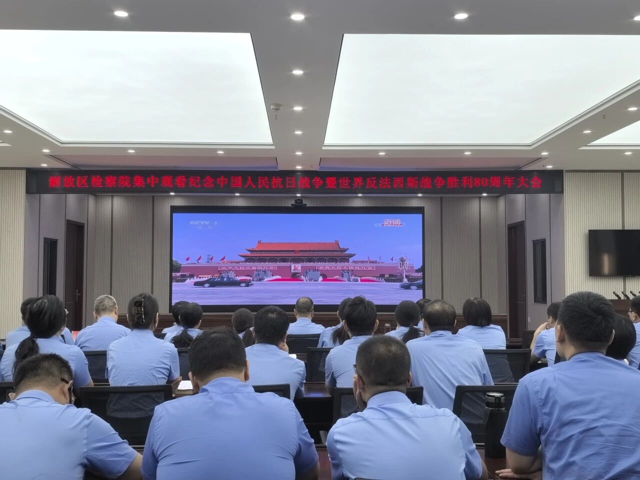 为弘扬伟大抗战精神,激发干警爱国情怀与责任担当,9月3日,焦作市解放区人民检察院组织全体干警集中观看纪念中国人民抗日战争暨世界反法西斯战争胜利80周年大会。